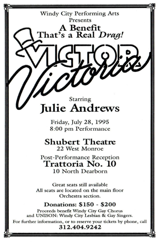 Founded in 1979, Windy City Gay Chorus is recognized nationally by composers and conductors as one of the finest male choruses in the country. UNISON: Windy City Lesbian and Gay Singers, now in its third year, is 45 members strong and is fast being recognized for its artistic excellence. Windy City Performing Arts has provided invaluable services to the Chicago metropolitan area. For the gay and lesbian community, the chorus provides positive public role models as well as offering important social occasions through its concerts and events. Many gay and lesbian individuals have commented on the importance of WCPA to their personal development – empowering their spirit and mind. For the general population, WCPA showcases the positive contributions gays and lesbians make to the community and encourages closer communication with lesbians and gays through the performing arts. In addition, WCPA provides an important service with its Partners in Performance program, through which the organization distributes tickets free of charge to persons with AIDS who could not otherwise attend its concerts. Members of Windy City Performing Arts are continually participating in support of local community celebrations and fund-raisers such as Halsted Street Market Days demonstrating a commitment to our community and a desire to reach an ever expanding audience.