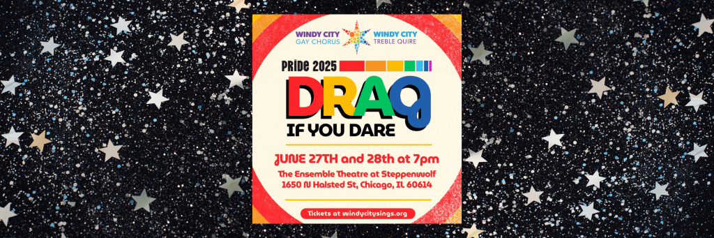 Celebrate PRIDE with unapologetic flair on Pride Parade weekend (June 27th and 28th) as Windy City Performing Arts brings you Drag If You Dare—a fabulous fusion of choral power and drag excellence! Join our choirs and some of Chicago’s fiercest local drag performers for an unforgettable night of music, joy, and queer brilliance in the round.