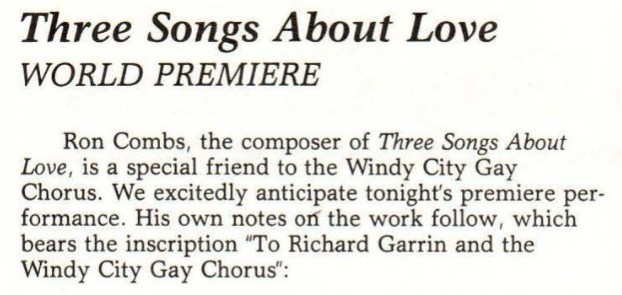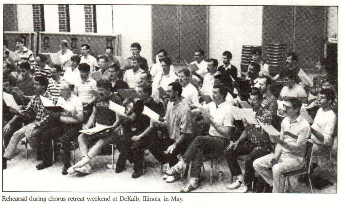 In the spring of 1984, the Windy City Gay Chorus was awarded first place in the national competition of the Great American Choral Festival sponsored by Johnny Mann. To reach the national competition, the WCGC received first place in the regional competition of the festival, one of eleven such competitions held across the country. Last October, the WCGC was one of only seven choruses honored by an invitation to sing at the Illinois state convention of the American Choral Directors’ Association, and next spring WCGC has also been invited by the ACDA to sing at the organization’s regional convention in Indianapolis.