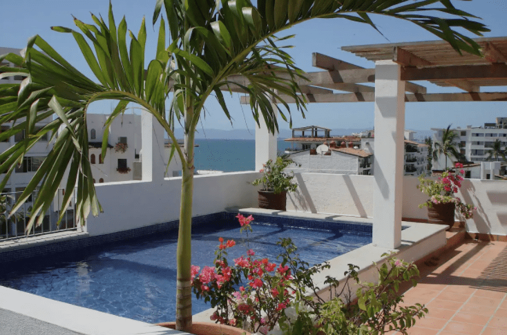 “Jardin Del Almendro offers a well appointed 2 bedroom 2.5 bathroom condo, nestled on a quiet Amapas cobblestone street in the Zona Romantica district of Puerto Vallarta Mexico. Walkable to the famed Los Muertos beach half a block away, dining, shopping, and other local attractions, so no car is necessary for this vacation destination. Enjoy sunning in the rooftop pool oasis overlooking the Bay of Banderas or sipping morning coffee in your large front veranda or private courtyard garden retreat.”